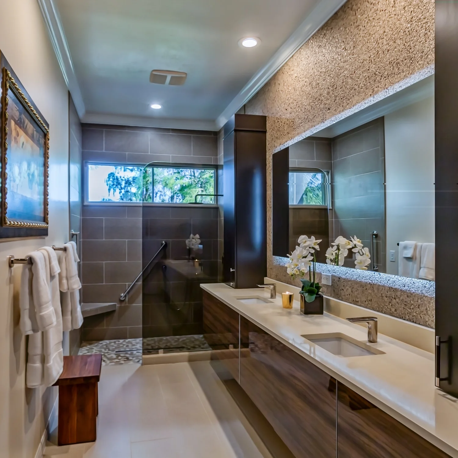 The curbless shower gives this space a sense of spaciousness that the former space lacked of.